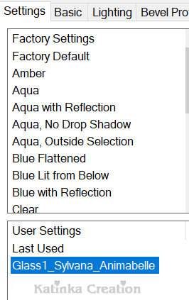 Kattintson duplán a "Glass1_Sylvana_Animabelle" előre beállított elemre,